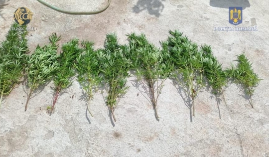 În urma percheziției domiciliare, au fost ridicate aproximativ 1 kg. de cannabis și mai multe plante de cannabis, cultivate în curtea casei, cât și la marginea comunei, într-o zonă cu vegetație deasă.