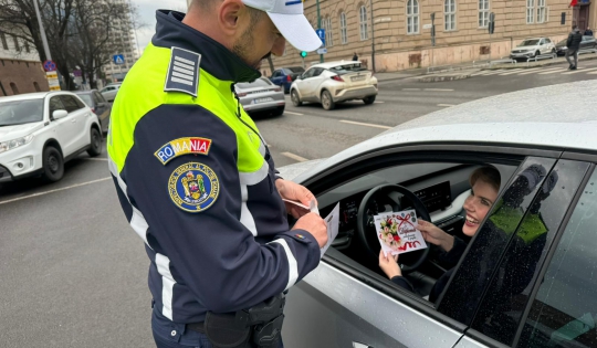 În prima zi a primăverii, polițiștii rutieri din cadrul Inspectoratului de Poliție Județean Timiș în colaborare cu Asociația Auto Club Rally Timiș au pregătit o surpriză pentru șoferițe oferindu-le diplome și mărțișoare.